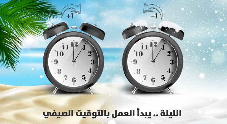 بدء العمل بالتوقيف الصيفي في الأردن Last updated مارس 27, 2020 Share وكالة الناس – بدأ العمل بالتوقيت الصيفي في الأردن اعتبارا من الليلة، بتقديم عقارب الساعة 60 دقيقة. وكان مجلس الوزراء، قرر اعتماد مبدأ العمل بالتوقيت الصيفي بتقديم الساعة 60 دقيقة، اعتبارا من منتصف ليلة اخر يوم خميس من شهر اذار من كل عام.