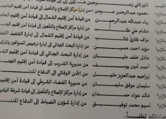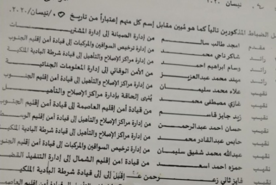 وكالة الناس – قرر مدیر الامن العام اللواء الركن حسین الحواتمة نقل 23 ضابطا اعتبارا من 2020/4/5