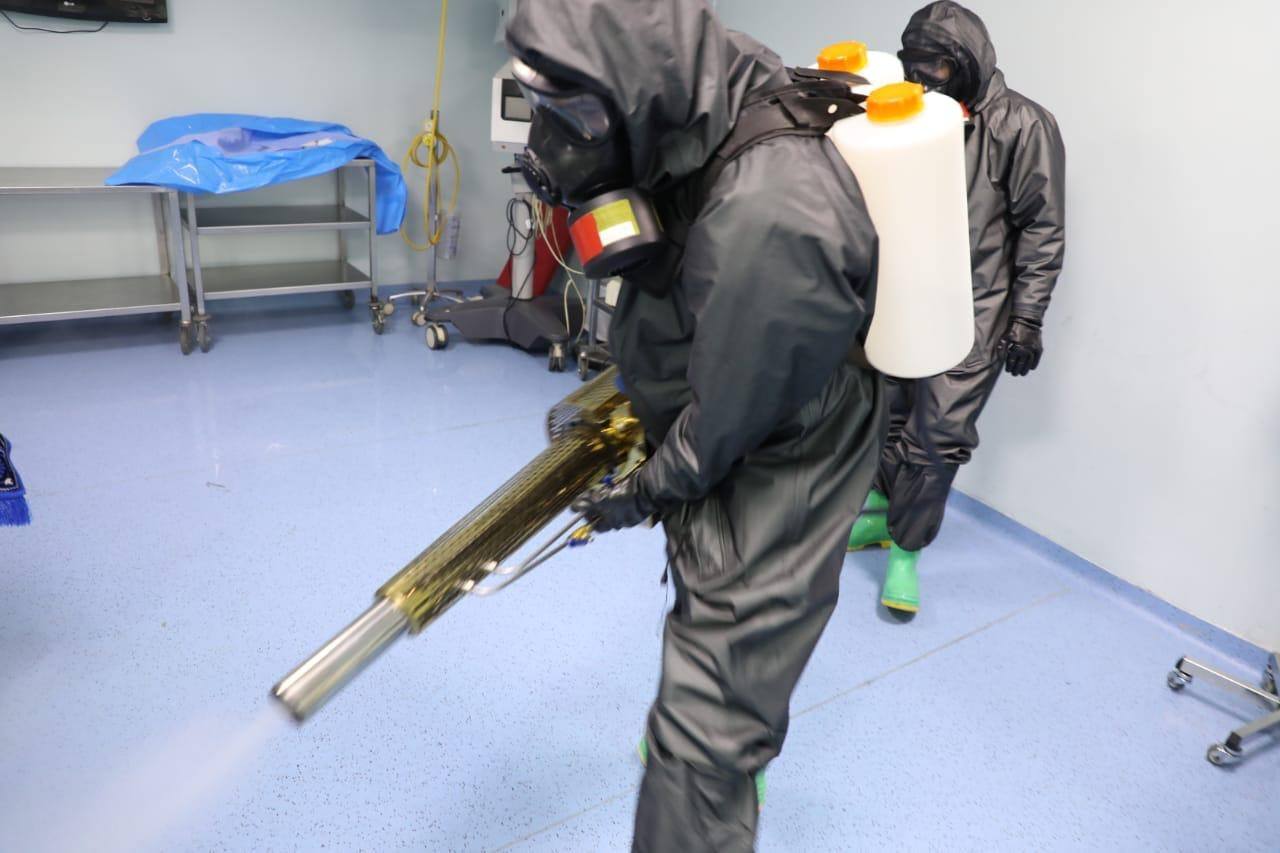 يشار إلى أن فريق المواد الخطرة في مديرية الأمن العام يعمل بالتعاون مع فريق الإسناد الكيماوي التابع للقوات المسلحة بعمليات تطهير وتعقيم واسعة لمباني وفنادق من المواقع المختلفة في جميع أنحاء المملكة، وحسب التنسيق المستمر مع المركز الوطني للأمن وإدارة الأزمات.