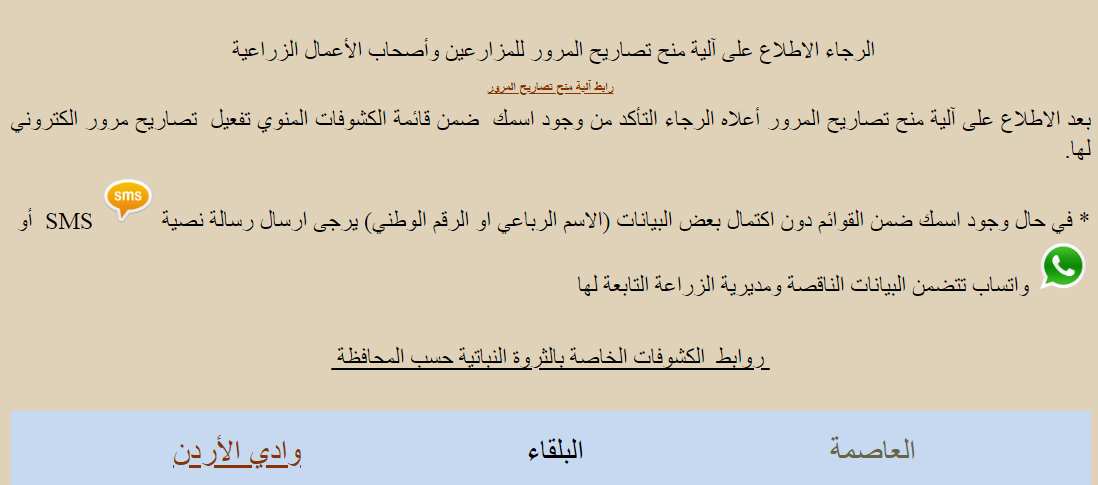 وللدخول إلى رابط منح التصاريح والية المنح للمزارعين ومربي الثروة الحيوانية:(اضغط هنا)