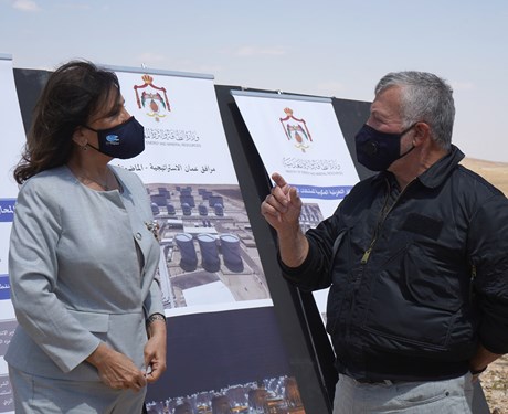 واستمع الملك إلى إيجاز قدمته وزيرة الطاقة والثروة المعدنية المهندسة هالة زواتي، أشارت فيه إلى أن مرافق عمان الإستراتيجية للمشتقات النفطية يوجد فيها مخزون إستراتيجي آمن للمملكة من البنزين والسولار والغاز البترولي المسال ووقود الطائرات.