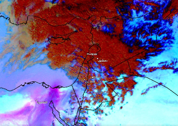 وكالة الناس – تشير صور الأقمار الاصطناعية إلى تشكل عاصفة رملية فوق الأراضي المصرية بسبب تواجد منخفض جوي خماسيني عميق في المنطقة، ويتوقع ان تتحرك العاصفة تدريجياً خلال الساعات القادمة لتطال أجزاء واسعة من الأردن.