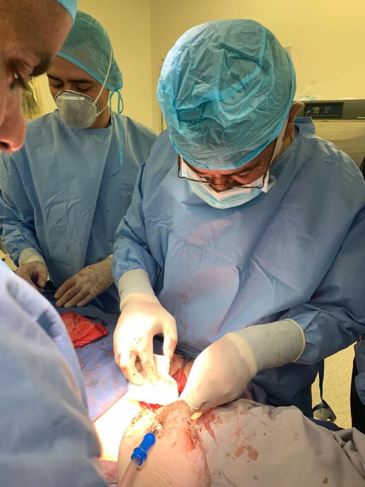 واضاف الصرايرة انه حال وصول المريضة تم تقديم الاسعافات الاوليه وبروتوكولات دعم الحياة الحرجة للاصابه ATLS وتم نقلها الى العمليات حيث كان الفريقان الجراحي و التخديري داخل غرفة العمليات للقيام بعملية استكشافية لمنطقة الرقبة حيث تبين وجود اصابة بالغة تحت الترقوه اليمنى وبعد السيطرة على النزيف تم القيام بازالة الجزء الداخلي من عظمة الترقوة ومن ثم ترميم الوريد مشيرا انة يتم التعامل في مثل هذة الحالات المشابهه من خلال جراحيين شرايين متخصصين.