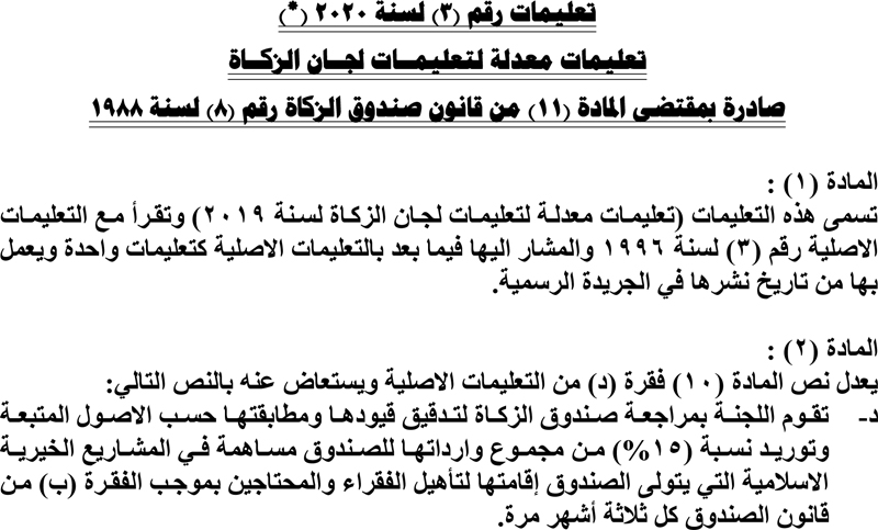 تعديل على تعليمات صرف الزكاة