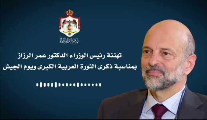 الرزاز يهنئ بذكرى الثورة العربية الكبرى ويوم الجيش (فيديو)