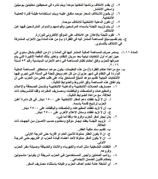 وكالة الناس – صدرت في الجريدة الرسمية اليوم الاربعاء تعليمات تقديم الدعم المالي للأحزاب السياسية لسنة 2020.