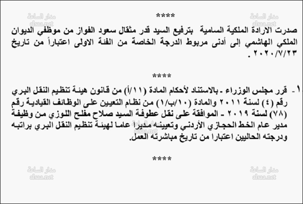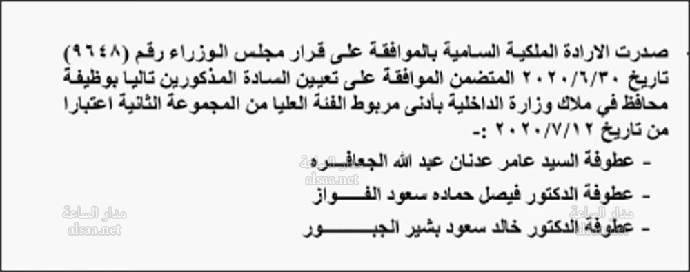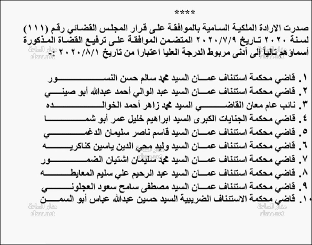 بالأسماء .. إرادات ملكية بتعيين محافظين وترفيع قضاة وبالديوان الملكي On أغسطس 4, 2020 Share وكالة الناس – إرادات ملكية بتعيين محافظين وترفيع قضاة وبالديوان الملكي (أسماء): (مدار الساعة)