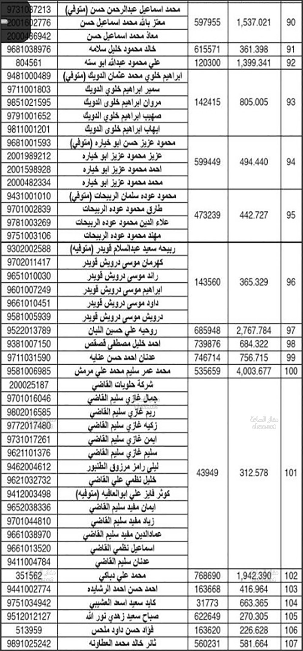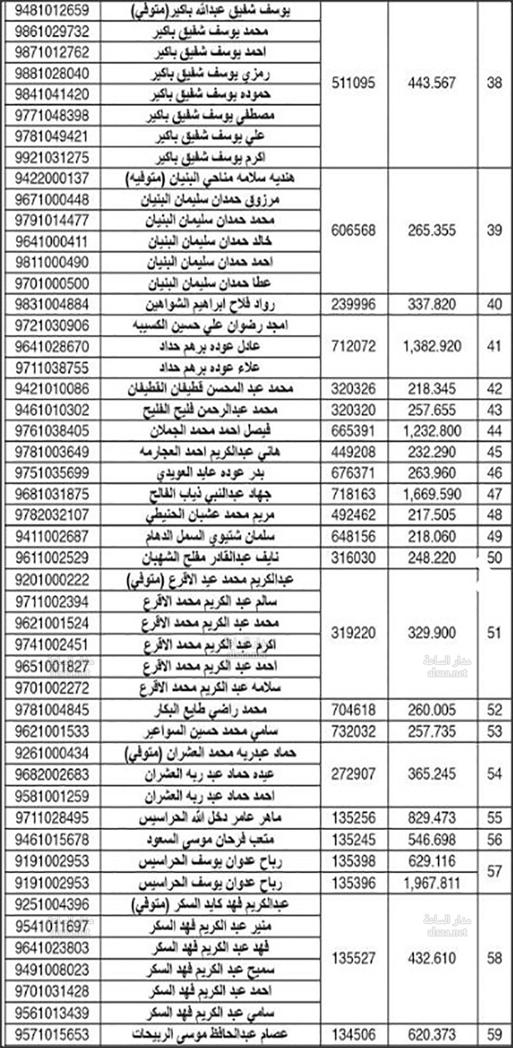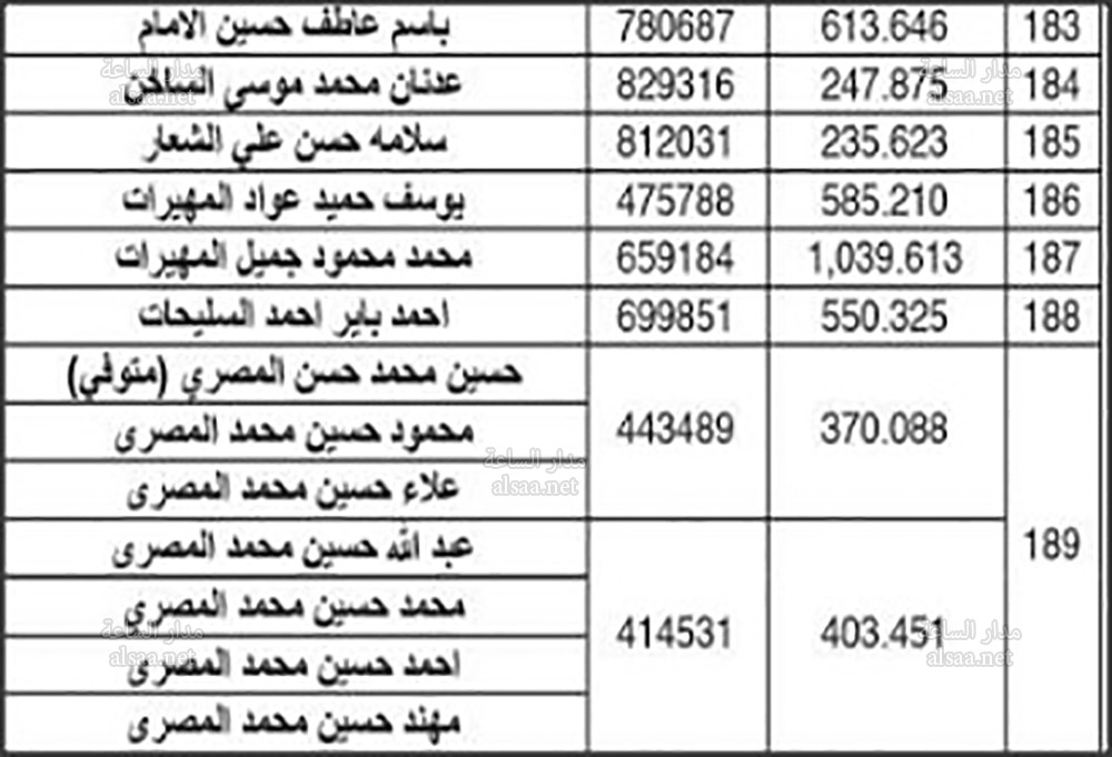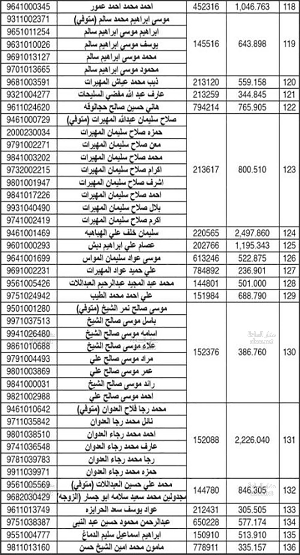 وكالة الناس – دعت شركة مياهنا اليوم الخميس التالية اسماؤهم إلى مراجعة ادارة الشؤون المالية في الشركة لتسديد أثمان المياه المترتبة عليهم وتجنبا لقيام سلطة المياه باستكمال الاجراءات المنصوص عليها في قانون السلطة.