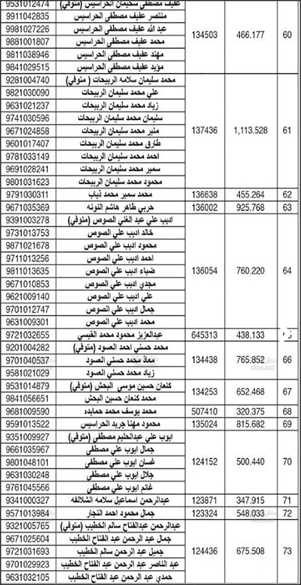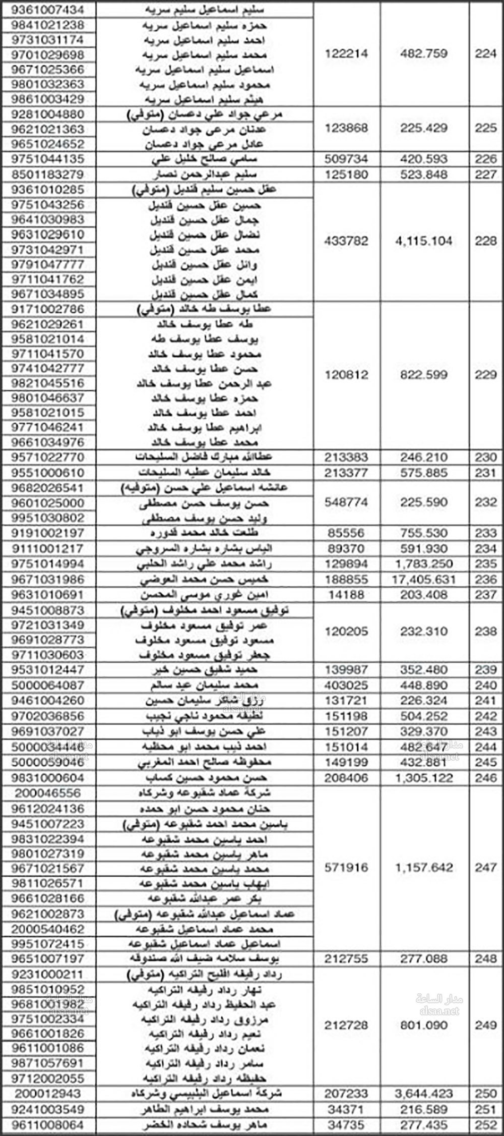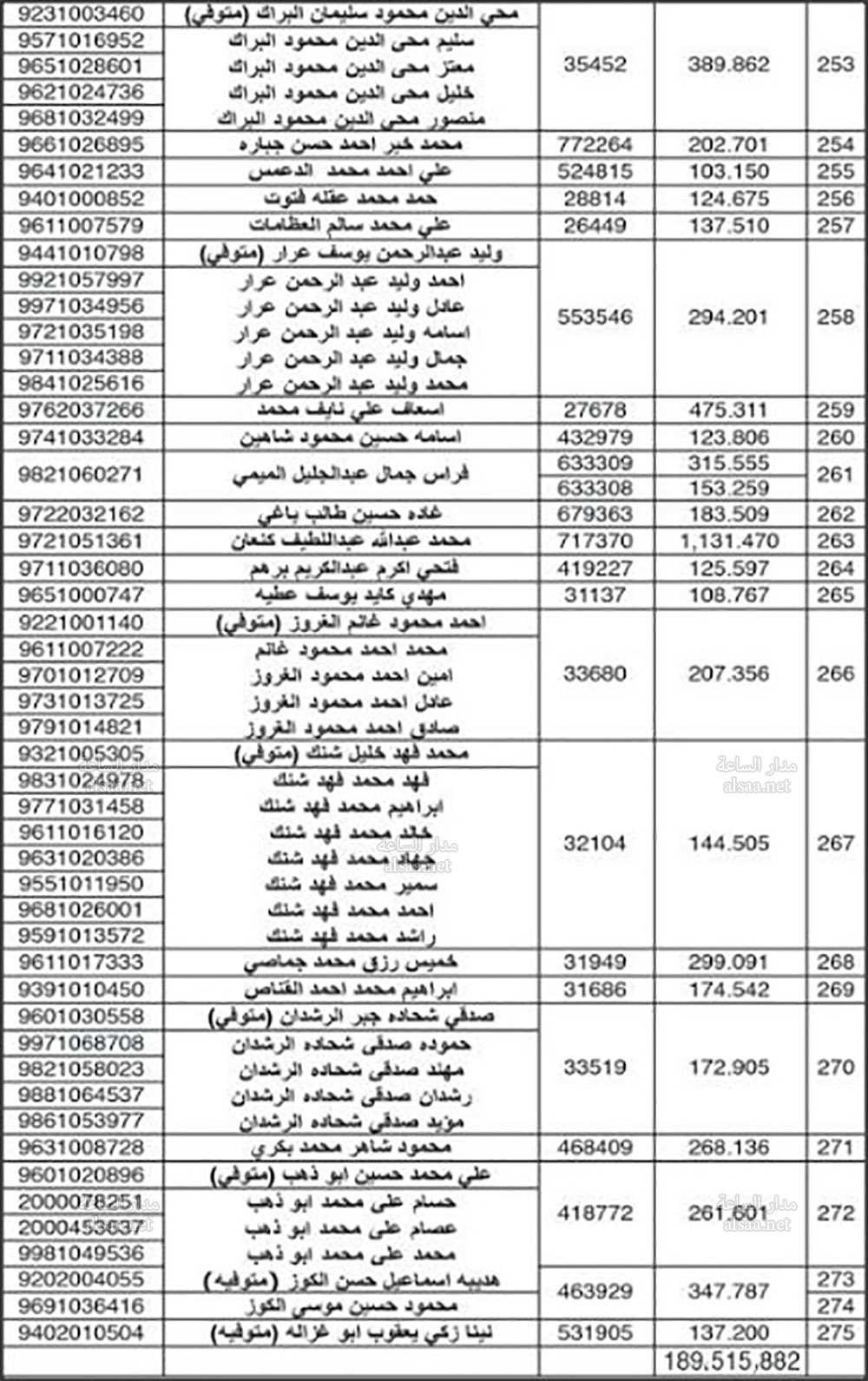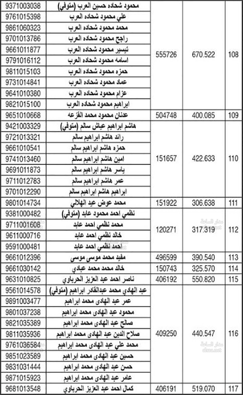 وكالة الناس – دعت شركة مياهنا اليوم الخميس التالية اسماؤهم إلى مراجعة ادارة الشؤون المالية في الشركة لتسديد أثمان المياه المترتبة عليهم وتجنبا لقيام سلطة المياه باستكمال الاجراءات المنصوص عليها في قانون السلطة.