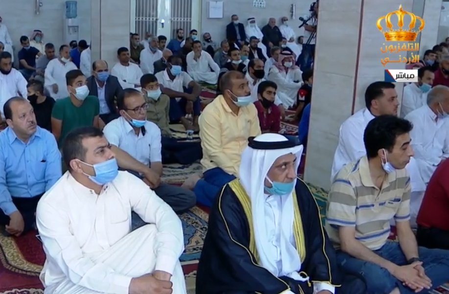 وكالة الناس – غياب التباعد الجسدي في مسجد مأدبا الغربي في ظل وجود وزير الأوقاف محمد الخلايلة خلال تأدية صلاة الجمعة.