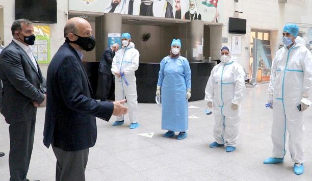 ونقل رئيس الوزراء تحيات وتقدير جلالة الملك عبدالله الثاني إلى فرق التقصي الوبائي، وأسرهم على تحمل ظروف العمل الصعبة، مؤكدا متابعة جلالته المستمرة لهذا المجهود الوطني وتوفير جميع المستلزمات الضرورية للعمل وتوفير الحماية لهم، واشاد الرزاز بالتعاون والشراكة الحقيقية بين وزارة الصحة والخدمات الطبية الملكية وتكامل جهودها لتعزيز المنظومة الصحية والحد من انتشار الوباء.