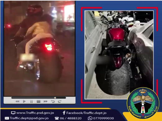 وكالة الناس – قال الناطق الاعلامي باسم مديرية الامن العام انه ورد لإدارة السير ، الاثنين ، مقطع فيديو جرى تداوله عبر مواقع التواصل الاجتماعي ظهر خلاله سائق دراجة نارية يقودها في العاصمة عمان بصورة متهورة واستعراضية مع تحميل طفلة على الدراجة ما شكل خطراً شديداً على حياتها وسلامة مستخدمي الطريق.