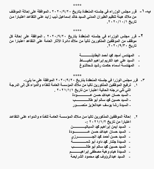 إرادة ملكية بإحالة عدد من موظفي الدولة الى التقاعد في هيئة الطيران المدني والآثار العامة .. أسماء On أكتوبر 1, 2020 Share وكالة الناس – صدرت الارادة الملكية بإحالة عدد من موظفي الدولة الى التقاعد في كل من هيئة الطيران المدني و دائرة الآثار العامة. وتالياً الاسماء: