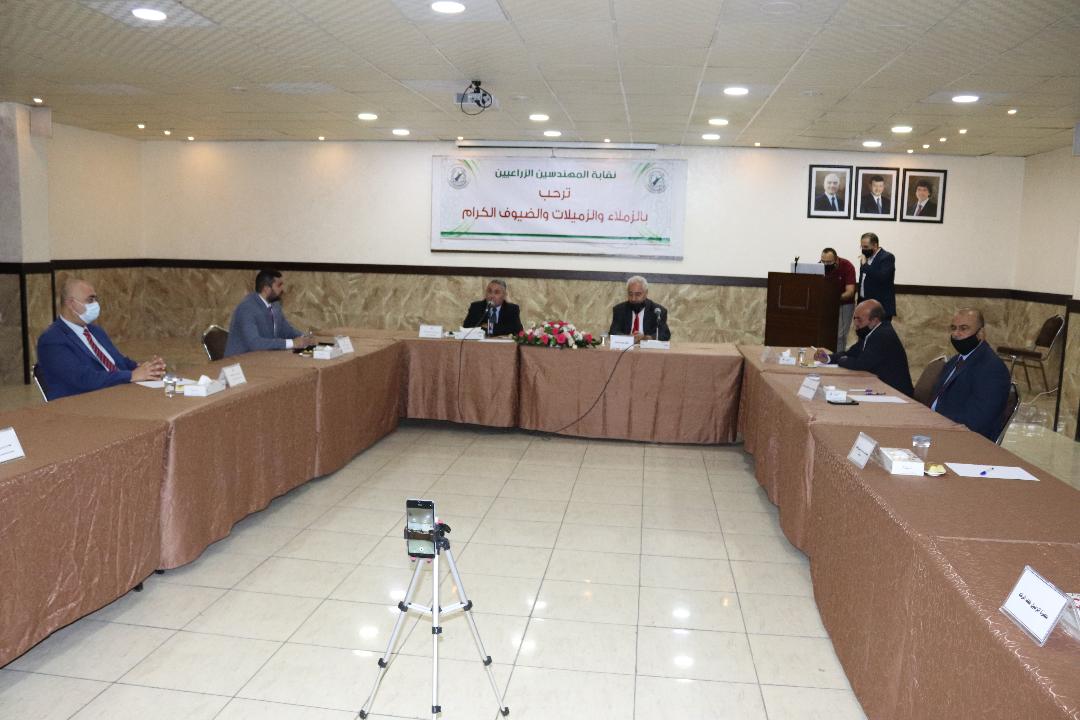 و أضاف خلال زيارته لمقر نقابة المهندسين الزراعيين التي رافقه فيها عطوفة المهندس محمود الجمعاني امين عام الوزارة وعطوفة مدير مؤسسة الإقراض الزراعي المهندس محمد الحياري أننا اليوم نؤكد اننا في شراكة دائمة وعلاقة تعاون ممتدة لنكمل مسيرة الانجاز فنعزز الإيجابيات ونبني عليها، ونعمل جميعا على إيجاد حلول ناجعة لتحديات القطاع الزراعي وهي كثيرة ليظل مستمرا في قدرته على توفير الامن الغذائي لموطننا. ونعمل بجد لترجمة كتاب التكليف السامي وانفاذ توجيهات جلالة الملك المعظم المتعلقة بالاستثمار في القطاع الزراعي .