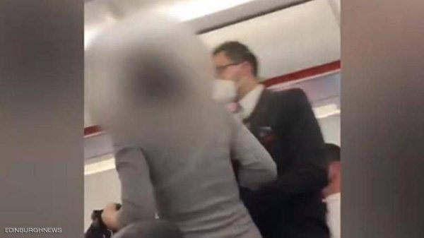 ويرصد الفيديو، الذي صوره راكب آخر في رحلة طيران على متن “إيزي جيت” يوم الأحد، وكانت متجهة من بلفاست بأيرلندا الشمالية إلى إدنبرة في اسكتلندا، المرأة وهي تفقد أعصابها، بعدما اقترب منها مضيف طيران لإنزالها من الطائرة.