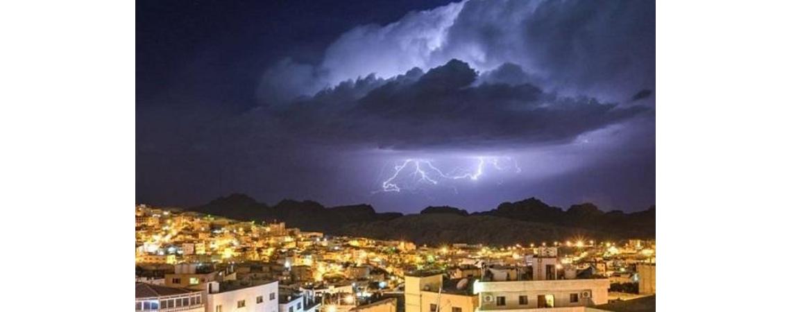 وبحسب تقرير دائرة الارصاد الجوية، تتأثر المملكة ليلا تدريجياً بحالة من عدم الاستقرار الجوي، وتغطي سماء المملكة كميات من الغيوم على ارتفاعات مختلفة، وتتهيأ الفرصة لهطول زخات متفرقة من المطر في أجزاء محدودة من المملكة قد يصحبها الرعد احيانا، وتكون الرياح جنوبية شرقية معتدلة السرعة تنشط احياناُ.