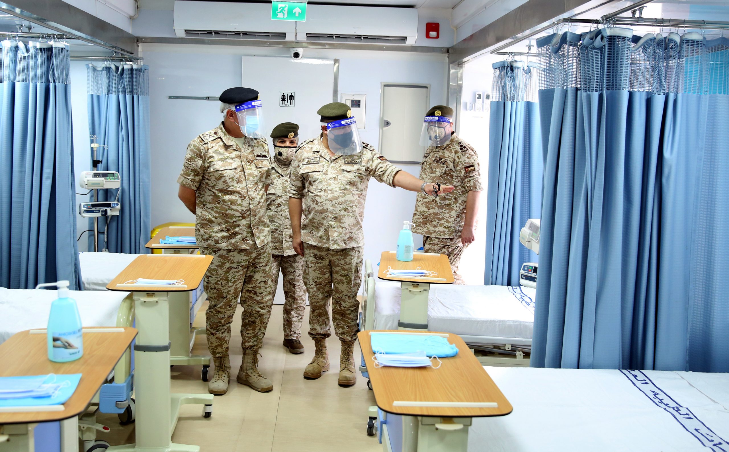 وأكد رئيس هيئة الأركان المشتركة على ضرورة تعزيز قدرات الخدمات الطبية الملكية لمواجهة الفيروس من خلال تزويد مستشفى الأمير راشد بن الحسن في إربد ومستشفى الأمير هاشم بن الحسين في الزرقاء، بمستشفيات ميدانية متحركة وبطاقة استيعابية تصل لنحو 200 سرير لكل مستشفى.