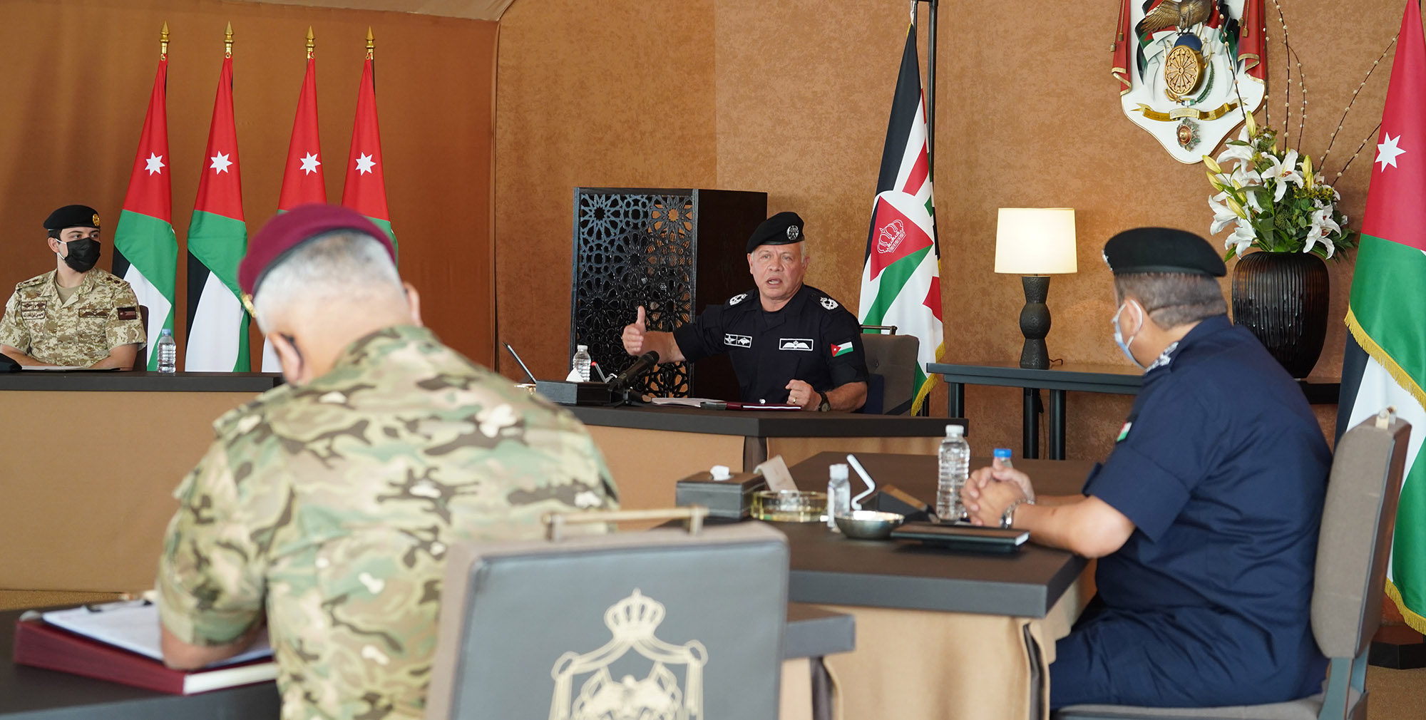 وقال جلالته، خلال اجتماع عقد في قصر الحسينية، اليوم الاثنين، بحضور سمو الأمير الحسين بن عبدالله الثاني، ولي العهد، مع مدير الأمن العام اللواء الركن حسين الحواتمة وكبار ضباط الأمن العام “أحيي كل الضباط وضباط الصف والأفراد في الدرك والدفاع المدني والأمن العام”.