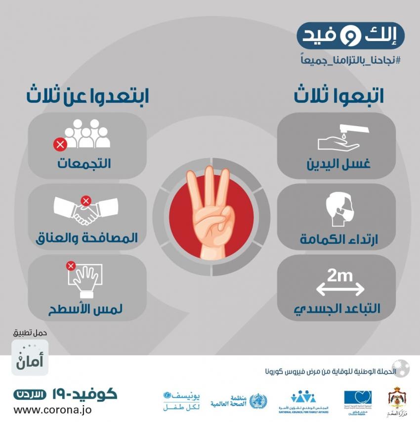 الصحة للأردنيين: اتبعوا ثلاث وابتعدوا عن ثلاث