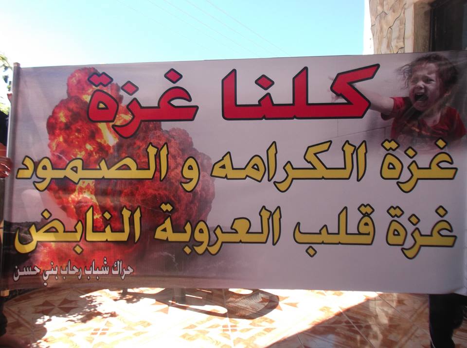 بالصور .. أبناء رحاب بني حسن يخرجون انتصاراً لغزة ويحرقون العلم الاسرائيلي