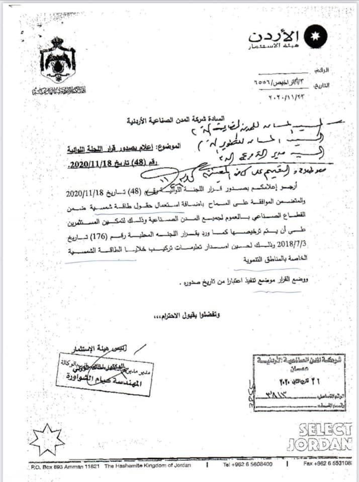 السماح لمصانع المدن الصناعية والتنموية باستعمال حقول الطاقة الشمسية (وثيقة)