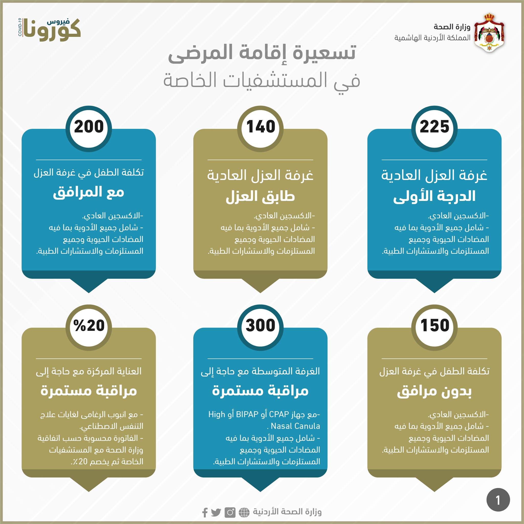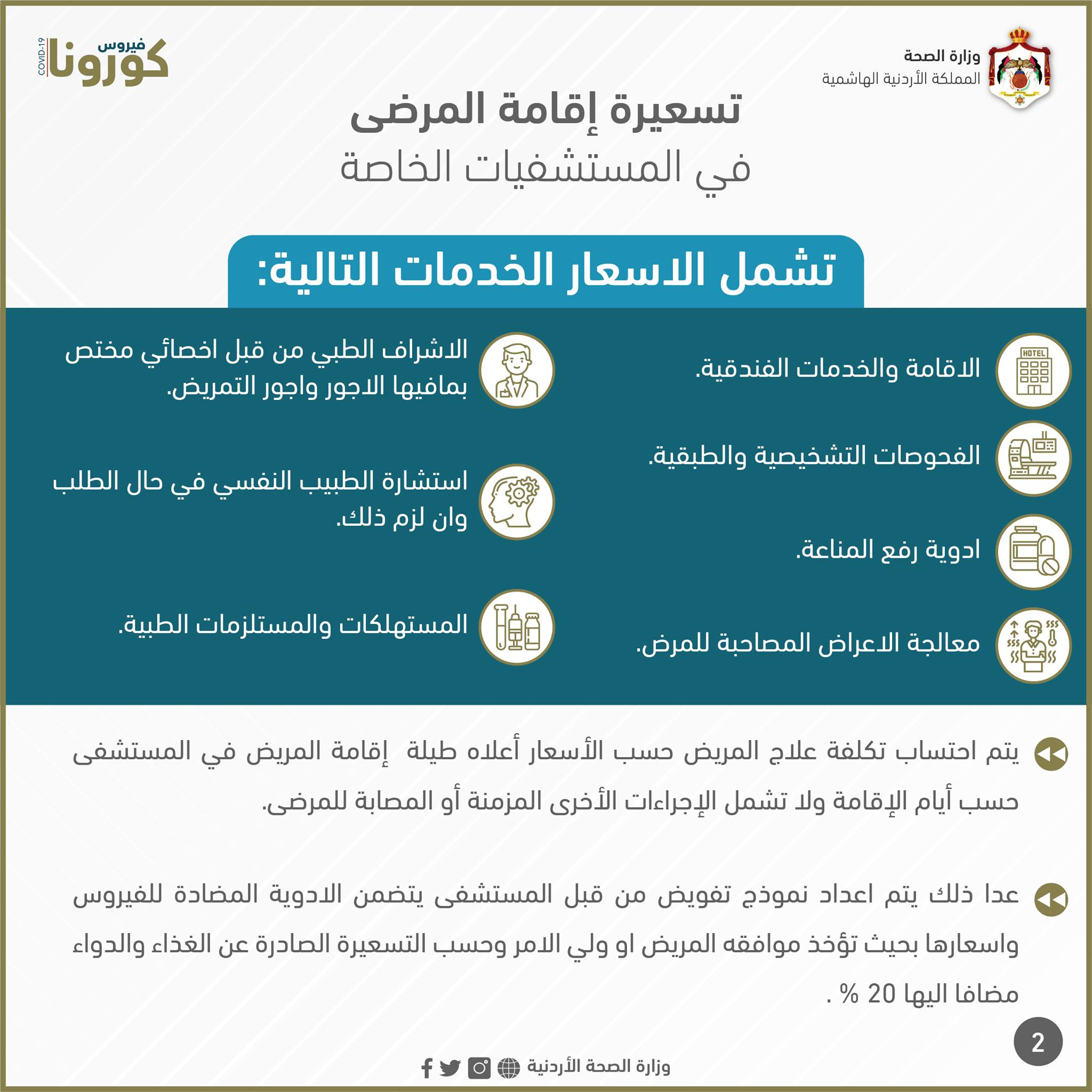 وكالة الناس – نشرت وزارة الصحة، اليوم الأربعاء، تسعيرة إقامة مرضى كورونا في المستشفيات الخاصة