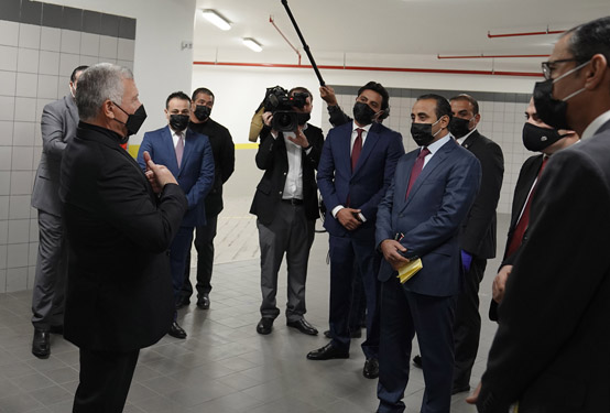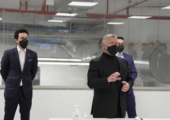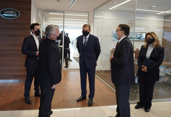 وتفقد جلالة الملك قاعات التدريس والتدريب في الأكاديمية، واستمع جلالته إلى شرح من نائب رئيس مجلس إدارة مجموعة المحمودية باسم ملحس حول مراحل التدريب العملي والنظري الممتد على مدى 18 شهراً داخل مشاغل صيانة السيارات والغرف الصفية في الأكاديمية، مشيراً إلى اتفاقية التعاون بين الشركة وجامعة الحسين التقنية، بالإضافة إلى الاتفاقية مع وزارة العمل وبرنامج خدمة وطن.
