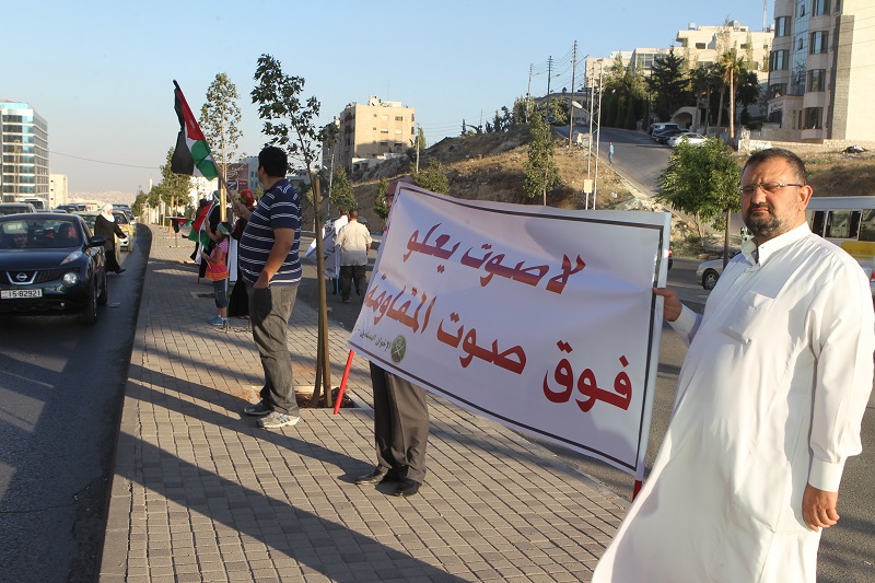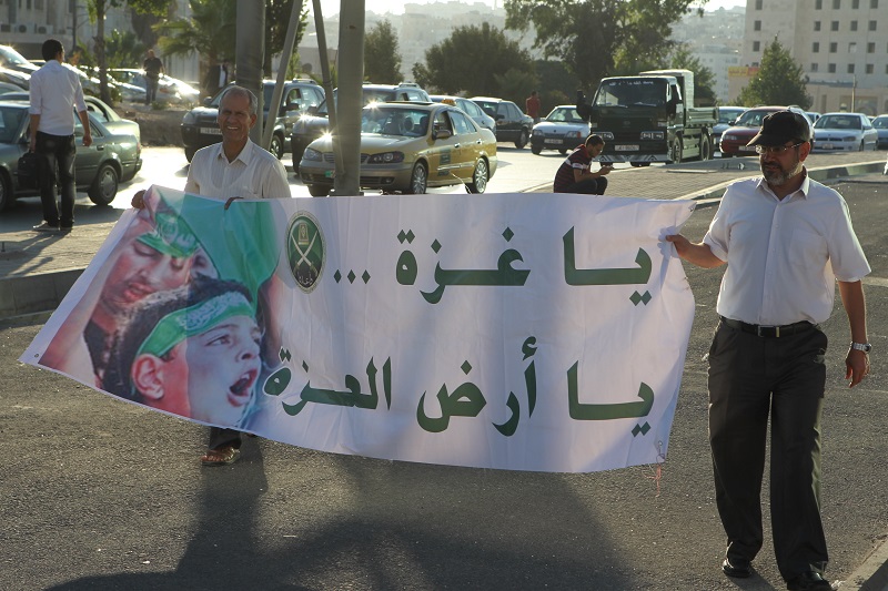 ورفع المشاركون لافتات مكتوب عليها، ‘انا اردني انا مع المقاومة’، ‘لا صوت يعلو فوق صوت المقاومة’، حيث شارك عدد من ابناء وبنات الحركة.