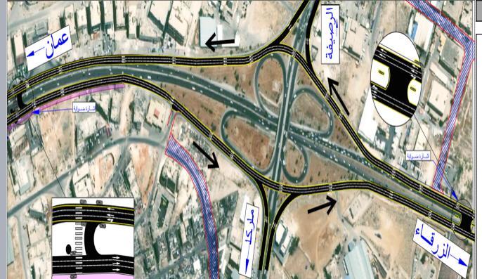 وبينت أنه سيتم توجيه حركة السير في منطقة الاغلاق الى الرامبات لاستخدامها لحركات الدوران حول منطقة الجسر وسيتم توجيه حركة السير للاتجاهات الأربع ( عمان ، الزرقاء ، ماركا ، الرصيفة ) من خلال الإشارات الارشادية اللازمة على جوانب الرامبات.