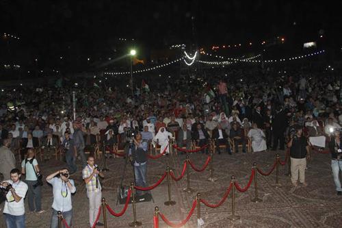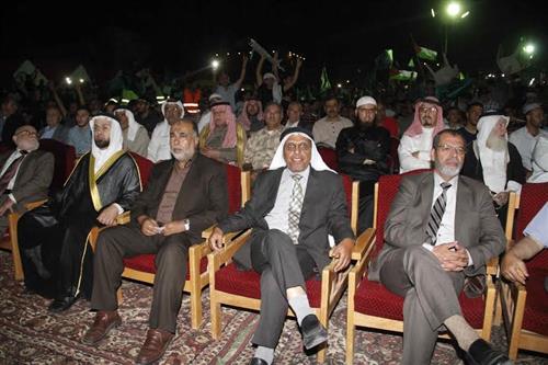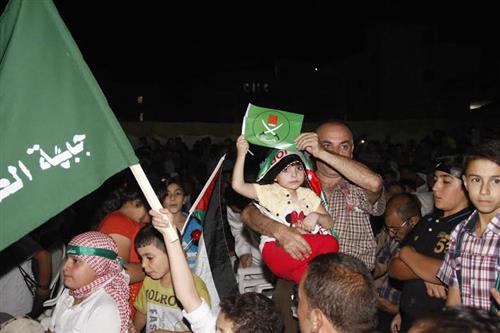 • سماء المهرجان تزينت بالأعلام الأردنية والفلسطينية ورايات الإخوان المسلمين.