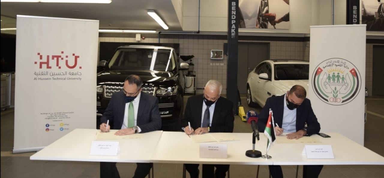 عمان جو – وقعت في مقر شركة المحمودية اليوم الثلاثاء ، مذكرة تفاهم مشتركة بين وزارة التنمية الاجتماعية وجامعة الحسين التقنية وشركة المحمودية لتجارة السيارة ، لتأطير سبل التعاون بين الاطراف الثلاثة بهدف تحسين حياة الاردنيين من خلال تدريب وتشبيك الشباب الاردني ومساندته للحصول على فرص عمل كريمة ومناسبة وملائمة لقدراته ورغباته في مجال تكنولوجيا السيارات في اكاديمية جاكوار لاند روفر للتلمذة المهنية بحيث تكون متوافقة مع احتياجات ومتطلبات سوق العمل المحلي والاقليمي.