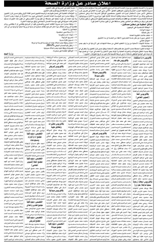 بالأسماء … الصحة تدعو مرشحين للتعيين