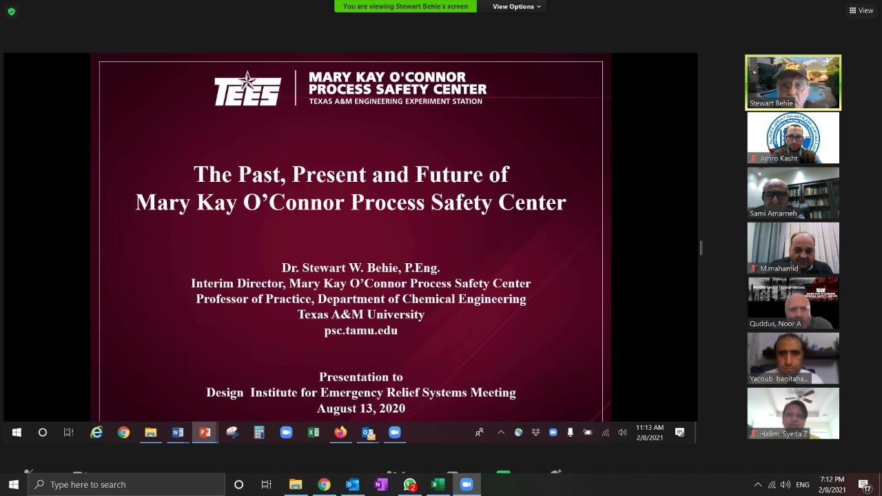 وكالة الناس – عقدت جمعية سلامة العمليات الكيميائية الأردنية في شعبة الهندسة الكيميائية بنقابة المهندسين الأردنيين، اجتماعا افتراضيا عن بعد مع مركز ماري كاي أوكونر لسلامة العمليات (Mary Kay O’Connor Process Safety Center)،  التابع لجامعة تكساس الامريكية ممثلة بالمدير التنفيذي للمركز الدكتور (Stewart Behie) والباحثين بالمركز الدكتور نور قدوس والدكتورة سيدة حليم، بحضور عضو مجلس النقابة رئيس شعبة الهندسة الكيميائية  المهندس محمد المحاميد، ورئيس اللجنة التأسيسية لجمعية سلامة العمليات الكيميائية الأردنية المهندس يعقوب بني طه ونائب رئيس الجمعية الدكتور سامي العمارنة وامين السر للجمعية المهندس عمرو الكشت .