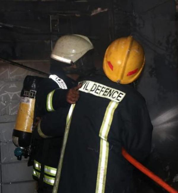 وقامت فرق الإطفاء بإخماد الحريق والسيطرة عليه، في حين عملت فرق الإسعاف على تقديم الإسعافات الأولية اللازمة للمصابين ونقلهم إلى مستشفى الأميرة راية الحكومي وحالتهم العامة متوسطة.