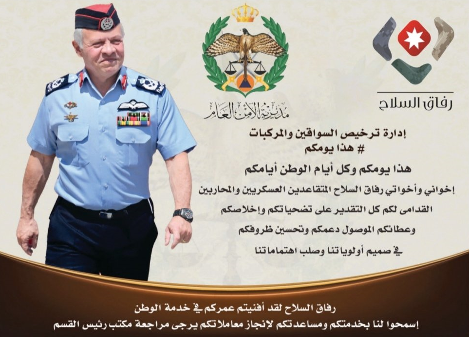 (بالصور) إدارة الترخيص تخصص مسارات خاصة للمتقاعدين العسكريين Last updated فبراير 16, 2021 Share وكالة الناس – إدارة ترخيص السواقين والمركبات : تخصص مسارات خاصة للمتقاعدين العسكريين.