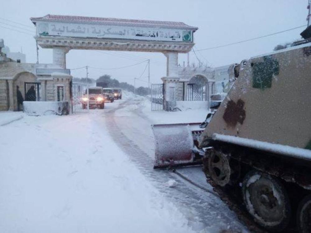 وقامت المنطقة العسكرية الشمالية، بفتح الطرق المغلقة في محافظات الشمال بسبب تراكم الثلوج، وتقديم المساعدة للمواطنين الذين حوصروا داخل مركباتهم، وتأمينهم بالاحتياجات الضرورية ونقلهم إلى منازلهم، إضافةً إلى التعامل مع العديد من انجرافات الأتربة جراء هطول الأمطار من خلال الآليات الهندسية.