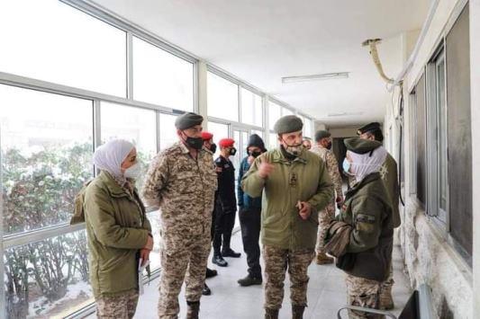 ووجه العميد عميش قائد سرية الشرطة العسكرية/ الخدمات الطبية الملكية بضرورة تنبيه المراجعين بالالتزام التام بإجراءات السلامة العامة أثناء التواجد داخل مرافق المستشفيات والمراكز الطبية للحفاظ على السلامة العامة والحد من انتشار فايروس كورونا.