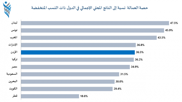 وكالة الناس – قال منتدى الاستراتيجيات الأردني إن حصة تعويضات العمالة في الأردن (نسبة إلى الناتج المحلي الإجمالي) بلغت 36.5%.