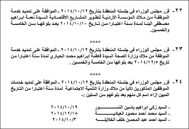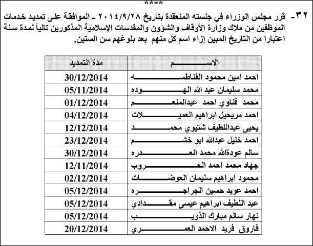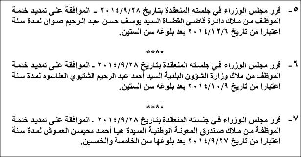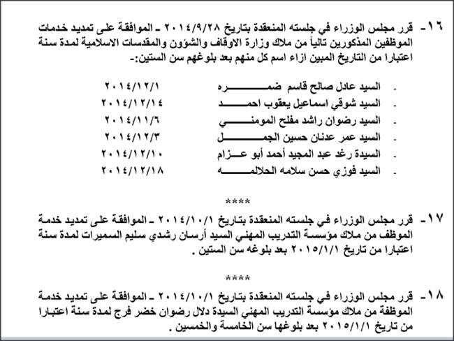 كما مددت الحكومة خدمة 70 موظفا حكوميا من مختلف الوزارات والمؤسسات التابعة لها بينهم 40 موظفا في وزارة الاوقاف.