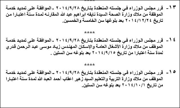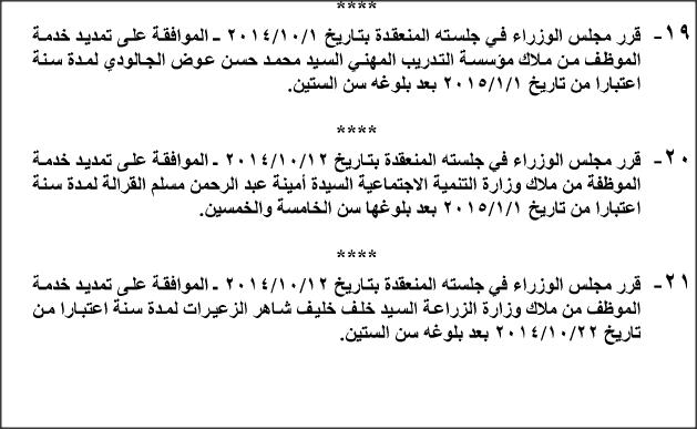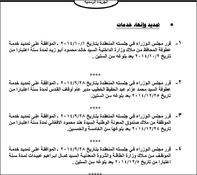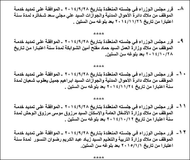 يشار إلى أن الحكومة تمدد سنويا لعدد كبير من الموظفين الذين بلغوا الستين عاماً من الذكور والخامسة والخمسين من الاناث.