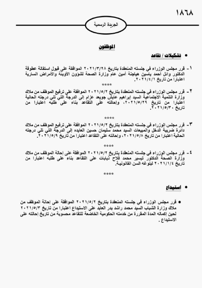 وكالة الناس – قرر مجلس الوزراء إحالة موظفين في عدد من الوزارات والدوائر إلى التقاعد.
