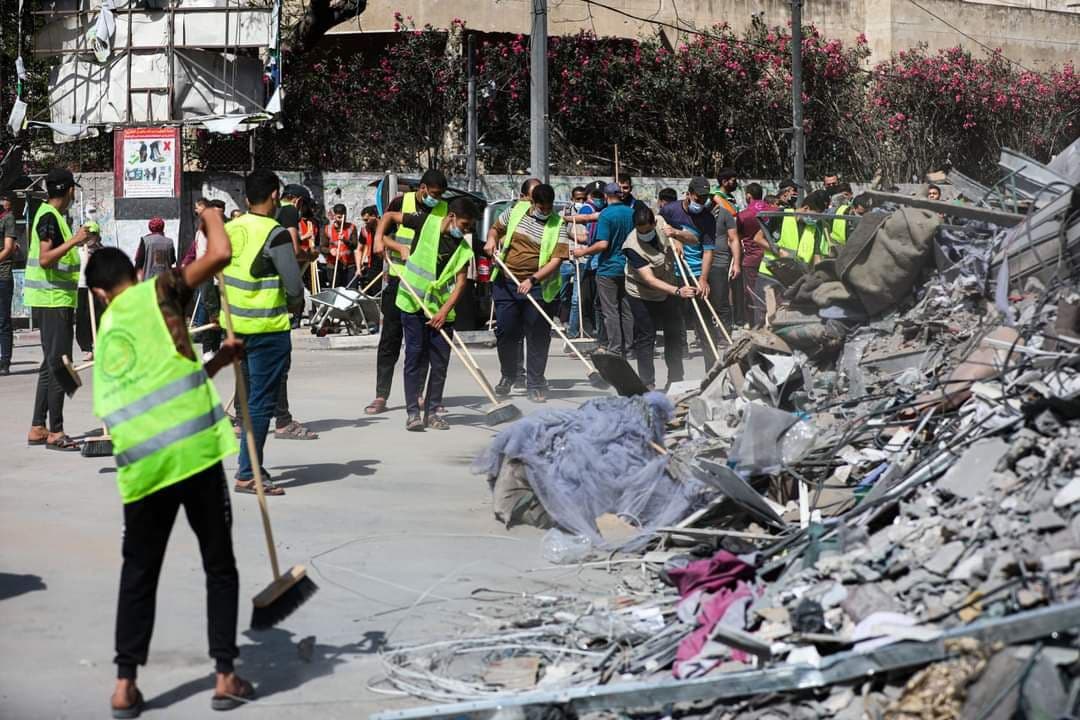 وكالة الناس – بدأ متطوعون فلسطينيون من قطاع غزة، الأحد، حملة بمدينة غزة من لإزالة آثار عدوان الاحتلال الإسرائيلي الأخير الذي استمر 11 يومًا وتسبب بإحداث دمار كبير في عدد من الشوارع والمفترقات الرئيسية، والأبراج والبنايات والمنازل السكنية.