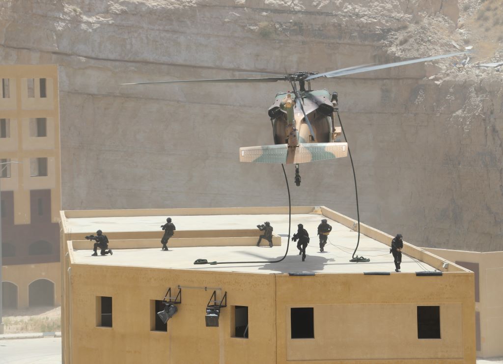 وفي سياق متصل تابع رئيس هيئة الأركان المشتركة اللواء الركن يوسف أحمد الحنيطي ورئيس هيئة أركان القوات المسلحة الباكستانية، اليوم الخميس، في مركز الملك عبدالله الثاني لتدريب العمليات الخاصة (KASOTC) مجريات التمرين العسكري لمكافحة الإرهاب، الذي نفذته مجموعة الملك عبدالله الثاني القوات الخاصة الملكية.