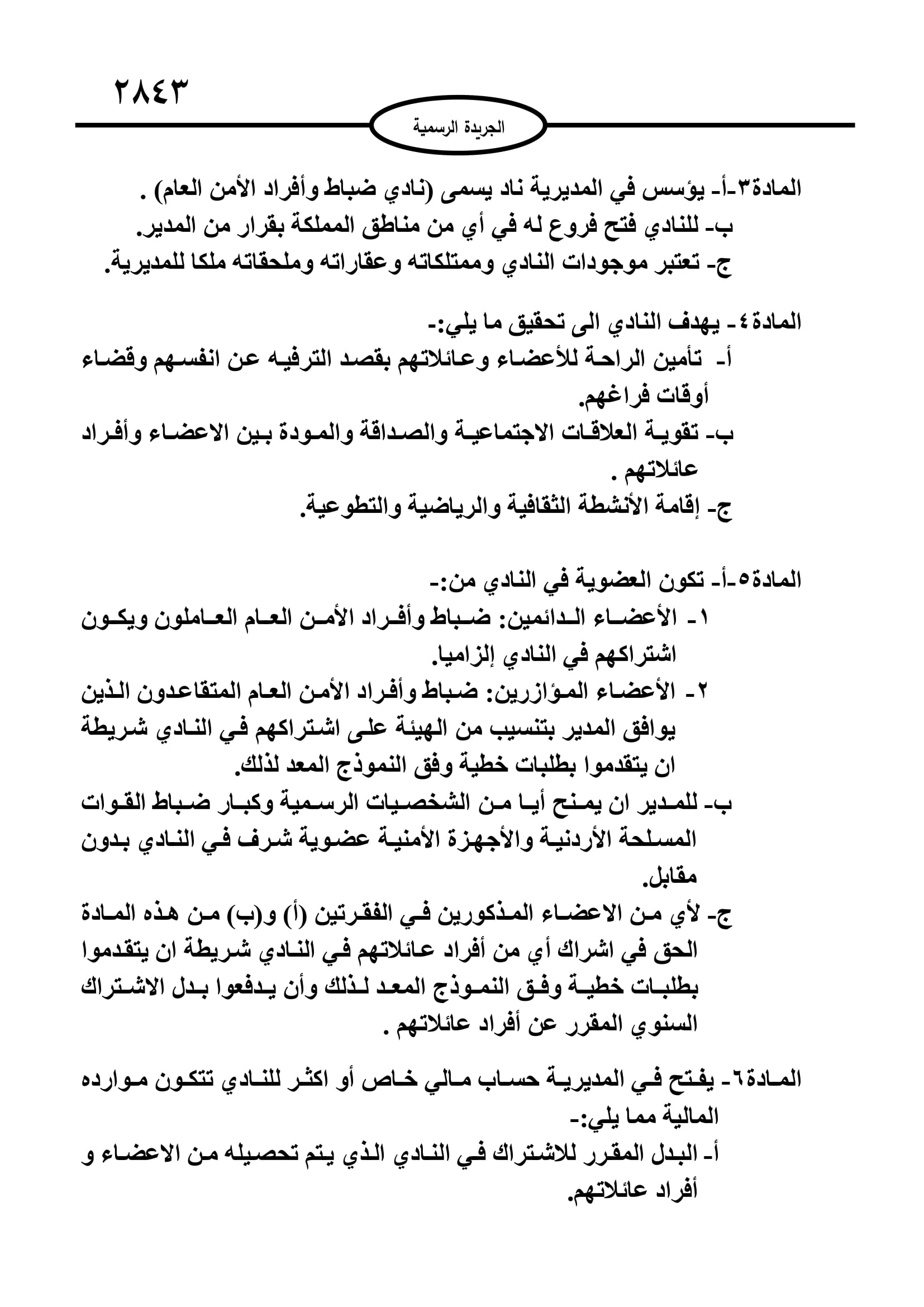 صدور نظام نادي ضباط وأفراد الأمن العام