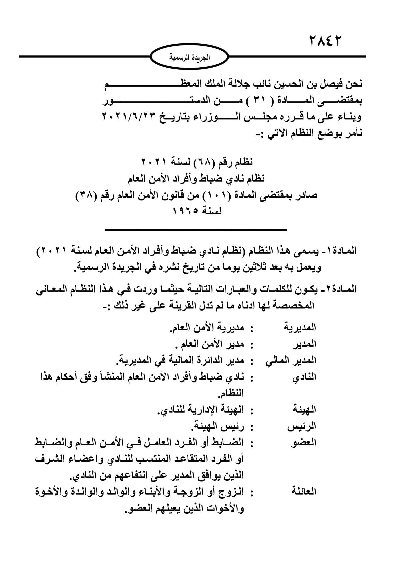 وكالة الناس –  صدر في عدد الجريدة الرسمية اليوم الخميس، نظام نادي ضباط وأفراد الأمن العام.