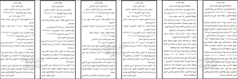 كما صدرت اخطارات عن دوائر التنفيذ في المحاكم.