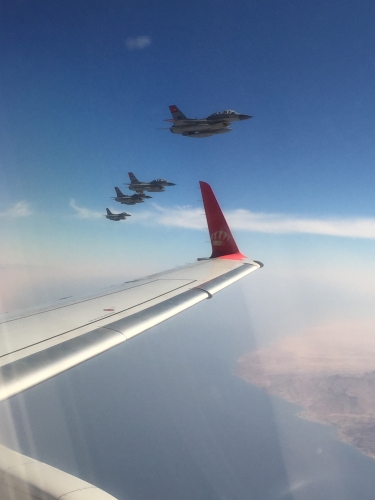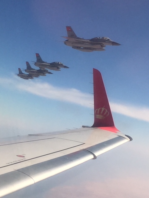 رافقت مقاتلات مصرية طائرة جلالة الملك عبدالله الثاني لدى وصولها أجواء مصر، قبل اللقاء الذي جمع جلالته بالرئيس المصري عبدالفتاح السيسي.