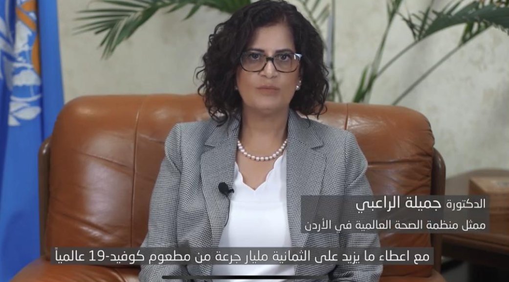 وقالت الراعبي في مقطع فيديو مصور تم بثه على جميع منصات منظمة الصحة العالمية في الأردن أكدت فيه أن 82% من الحالات المدخلة إلى المستشفيات و87% من الوفيات في الأردن كانت من بين غير المطعمين