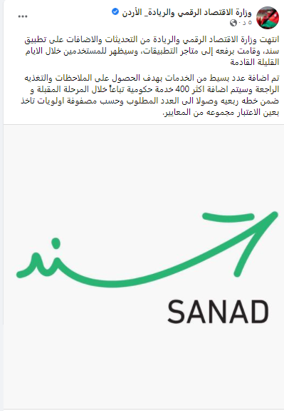 وقالت الاقتصاد الرقمي، في ادرج لها عبر فيسبوك، إنه تم إضافة عدد من الخدمات بهدف الحصول على الملاحظات والتغذية الراجعة وسيتم إضافة اكثر 400 خدمة حكومية تباعاً خلال المرحلة المقبلة وضمن خطه ربعيه وصولا الى العدد المطلوب وحسب مصفوفة أولويات تأخذ بعين الاعتبار مجموعه من المعايير.