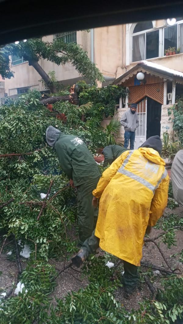 الأمانة تواصل رفع الثلوج ومخلفات الأشجار من جوانب الطرقات